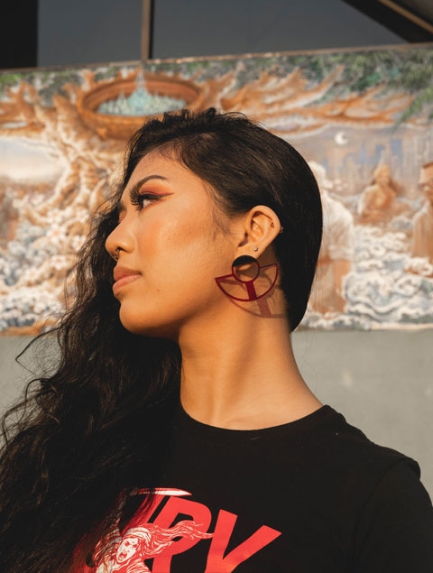 “We’re glad to announce our collaboration with another dope Fil-Am company, BRWNGRLZ to create accessories that compliment our shirt designs. These earrings are lasercut opaque and transparent acrylic hand assembled with nickel free gold coated brass findings.”