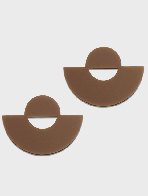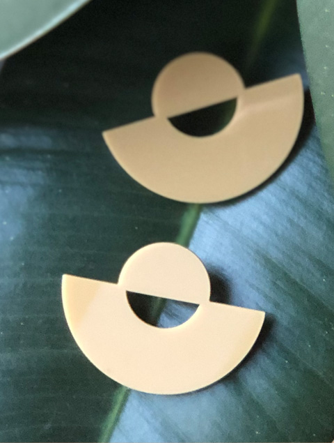 Laser cut acrylic with gold plated brass Clip on. Inspired by a combination of art deco and minimalist geometric shapes of the moon. The opaque acrylic makes these extremely light and easy to dress up or dress down with any outfit.