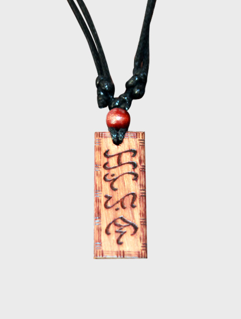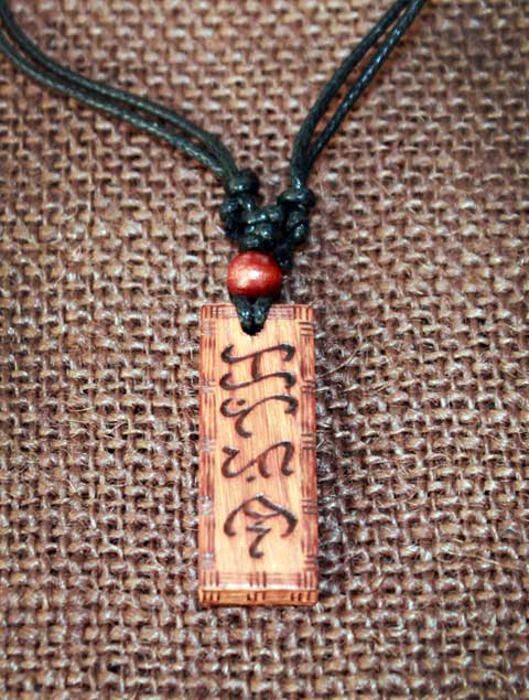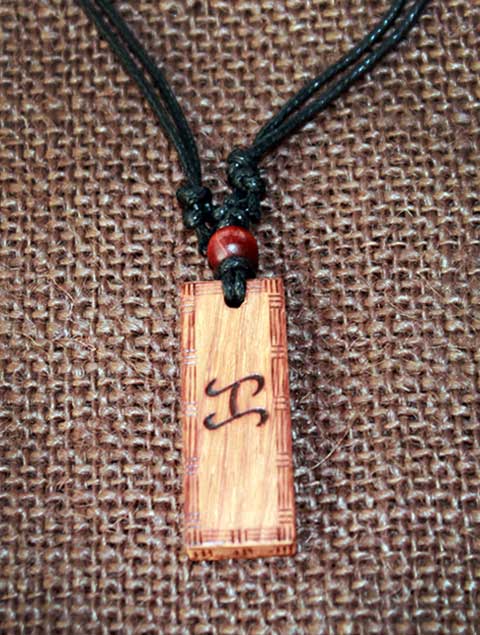 Malaya Designs Exotic wood Pendant, Baybayin “May Pagasa” and “Ka” (Adjustable) double sided handcrafted writing, approximately 5/8″ width, 1/4″ thickness, 1″ – 1 1/2″ length.